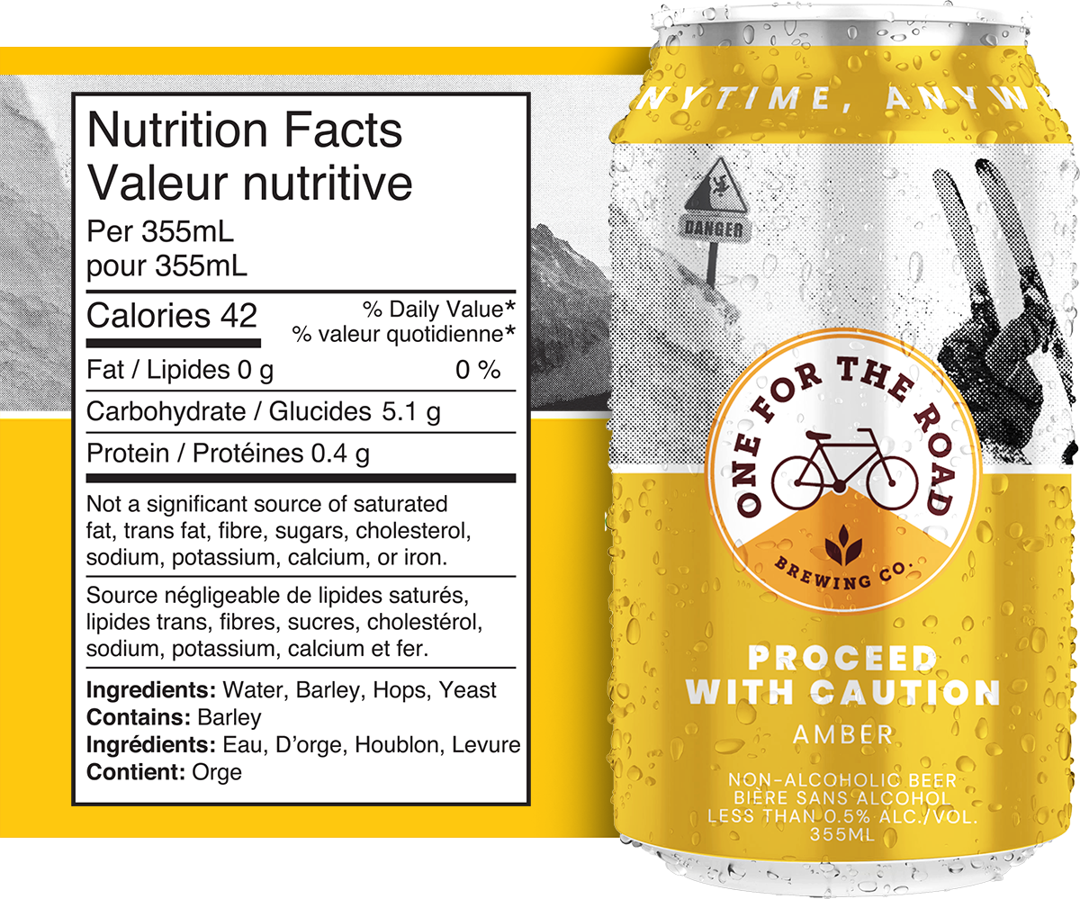 Our Proceed with Caution Amber is classified as non-alcoholic and contains less than 0.50% ABV, meeting the standard for non-alcoholic beverages.